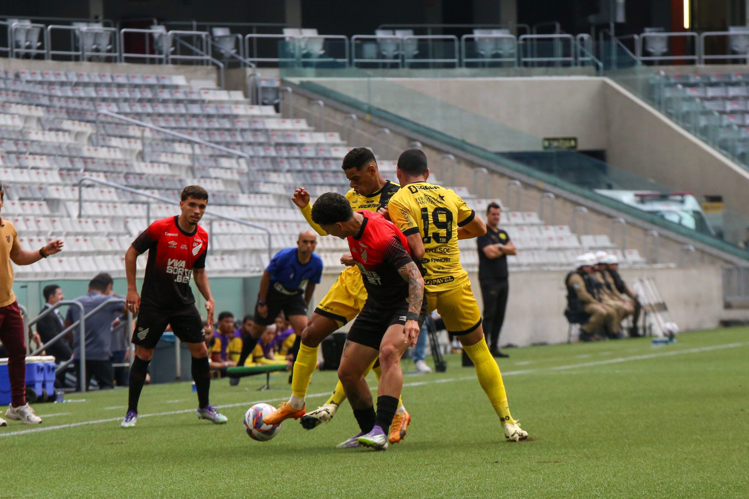 O Athletico manteve a pressão, mas encontrou uma defesa aurinegra sólida e bem postada. Antes do intervalo, os mandantes ainda tentaram marcar em um escanteio fechado cobrado pela esquerda, mas Passarelli fez a defesa e sofreu falta no lance.