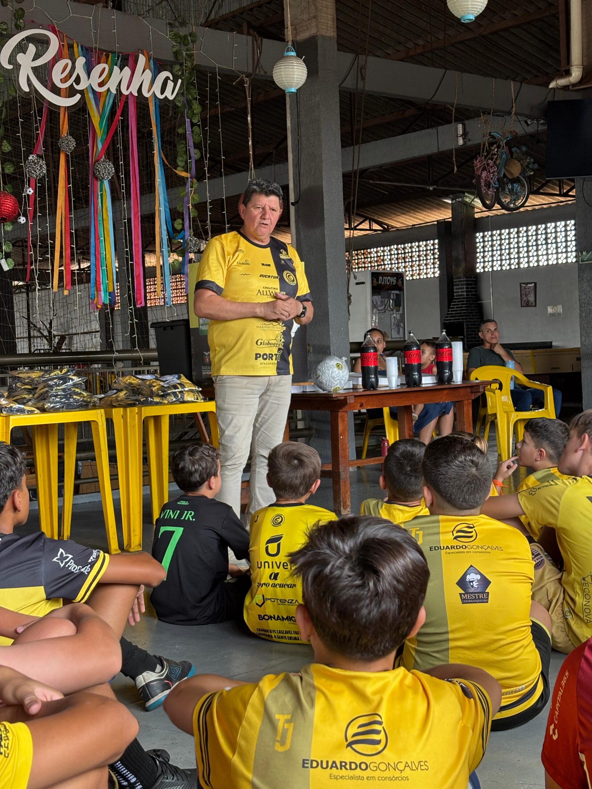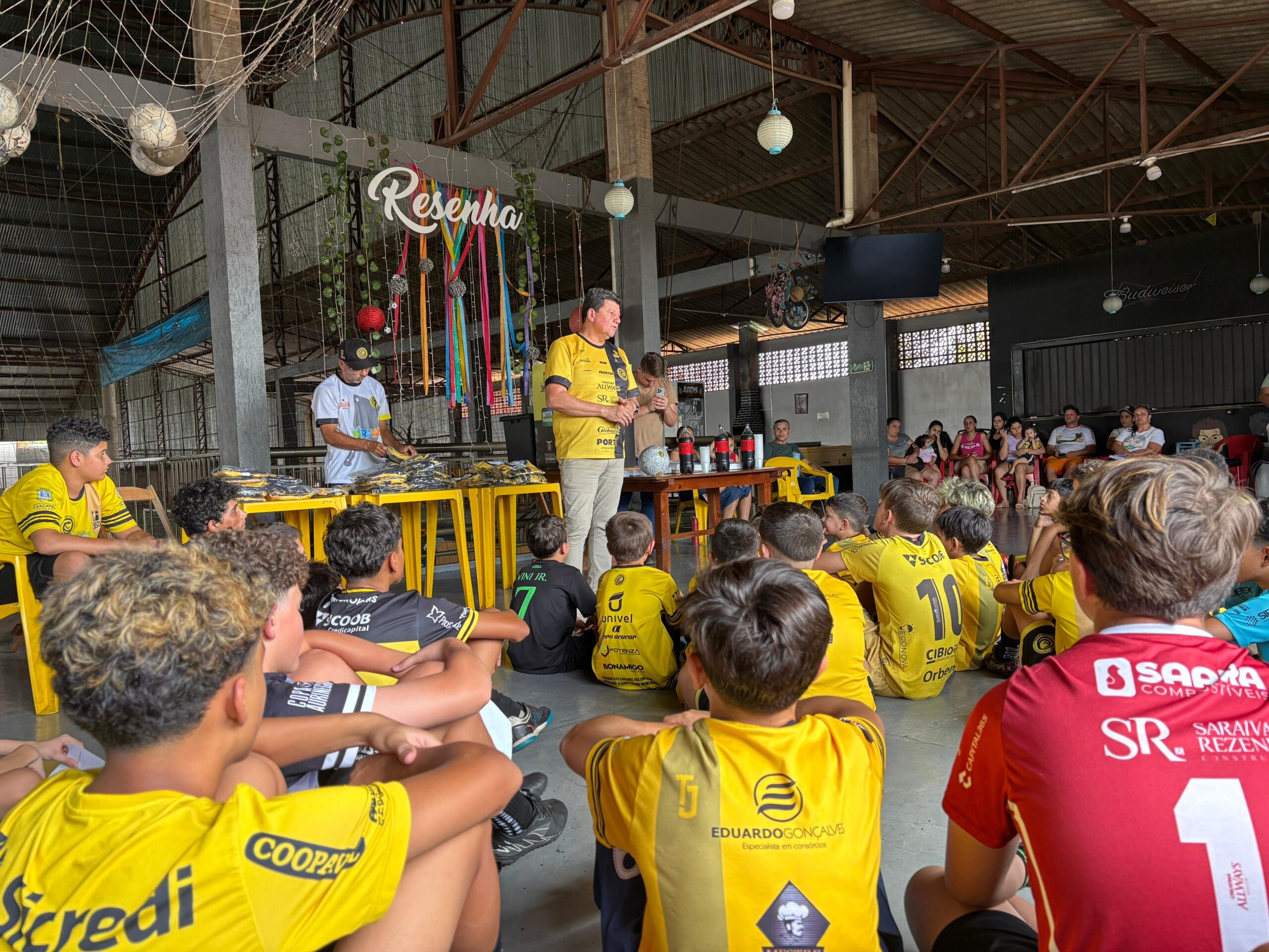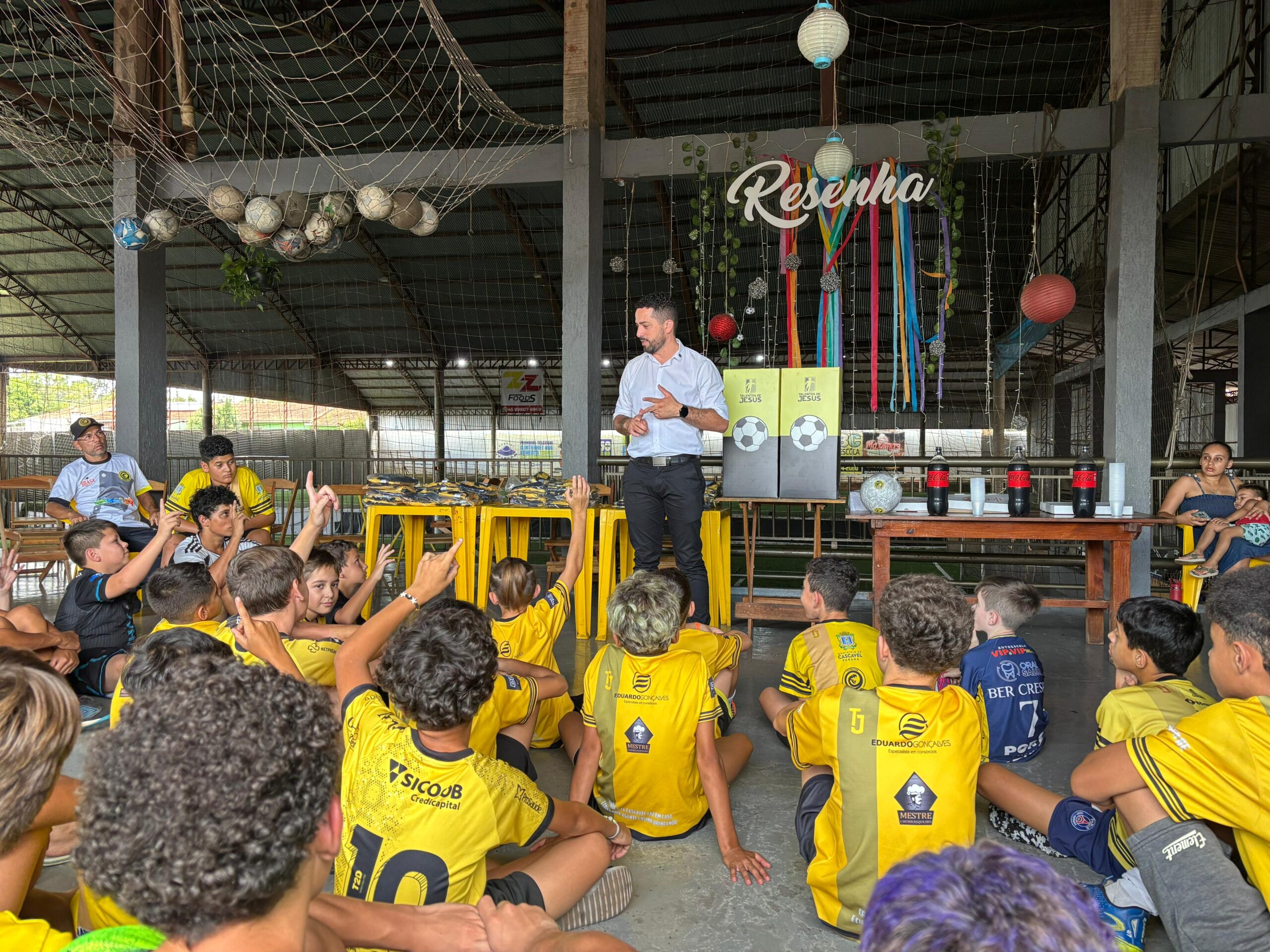 Durante o evento, foi realizada a entrega de um conjunto de uniforme de treino para os alunos, com camisa e calção. Ao final da atividade, as crianças também receberam um lanche, promovendo um momento de integração.