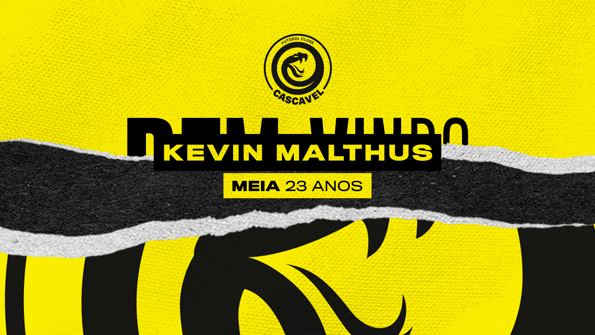 O Cascavel anuncia a contratação por empréstimo junto ao EC São Bernardo, do meia Kevin Malthus, de 23 anos, como novo reforço do elenco para a sequencia da temporada 2026. O atleta chega para fortalecer o setor de meio-campo da Serpente, agregando qualidade técnica, intensidade e versatilidade ao modelo de jogo da equipe na disputa do Campeonato Brasileiro Série D.